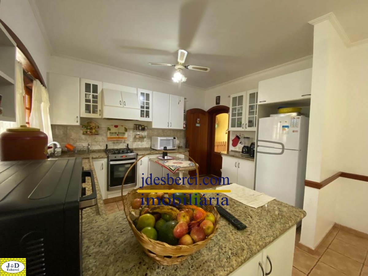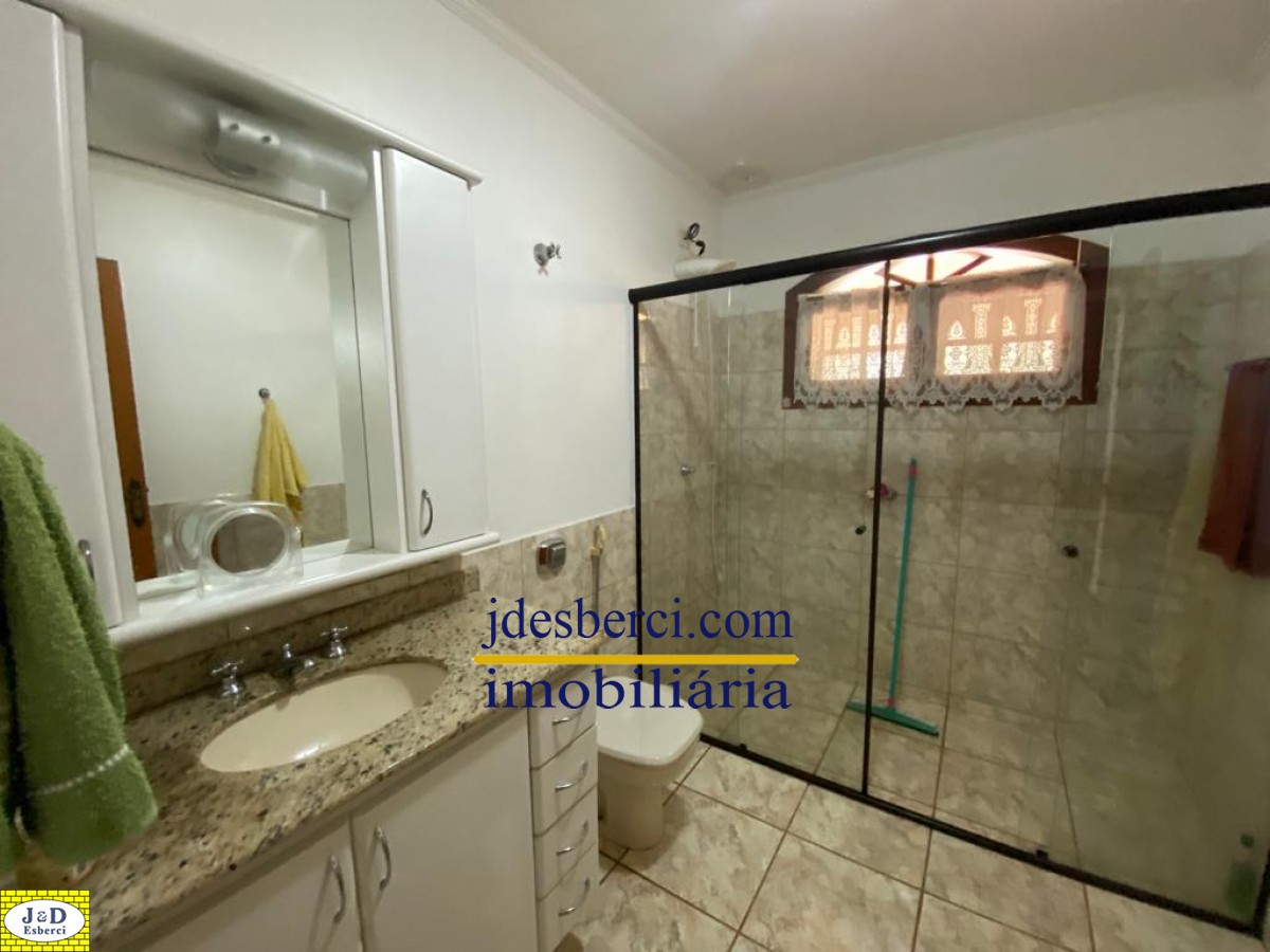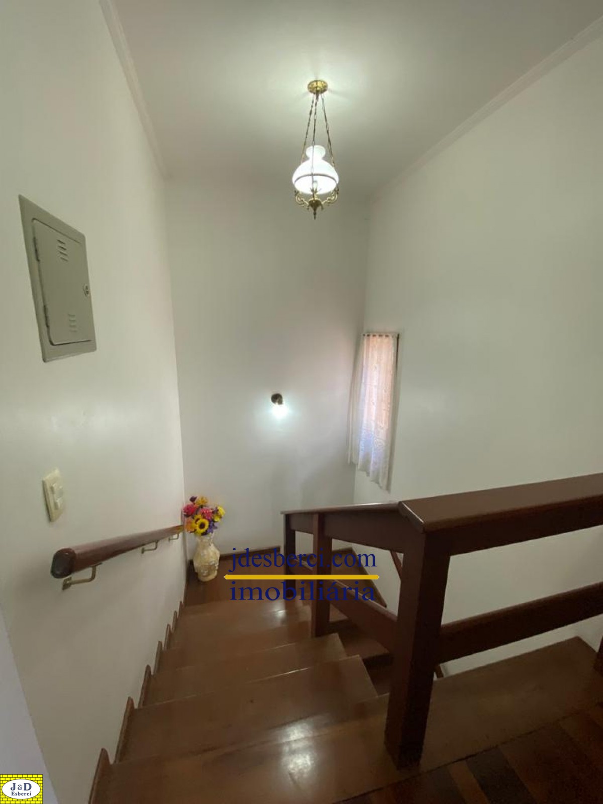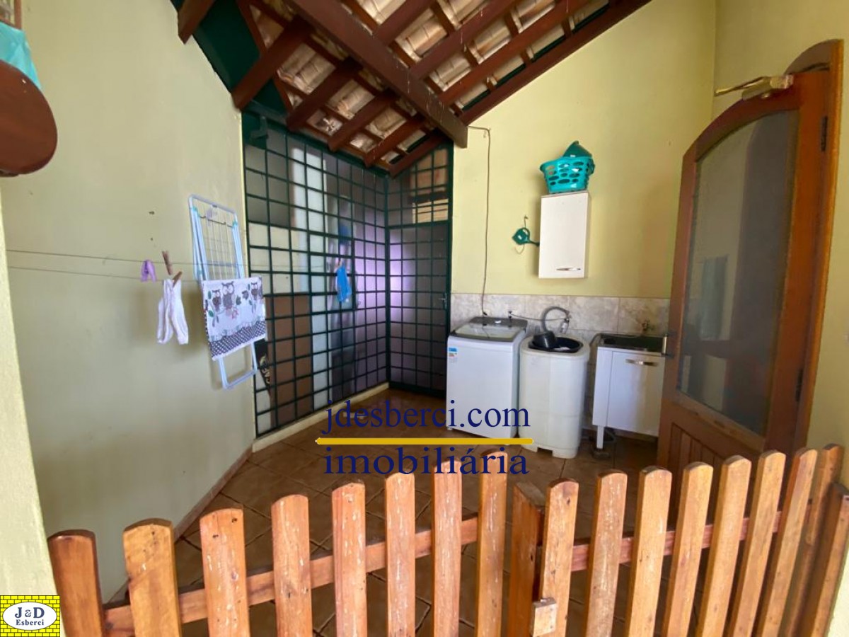 Residência tipo Sobrado em terreno de esquina, 3 dormitórios no andar superior, 2 banheiros, 1 em cada andar, andar térreo com sala de estar, cozinha, sala de jantar integrada, despensa, escritório; Área de lazer com churrasqueira e lavanderia.