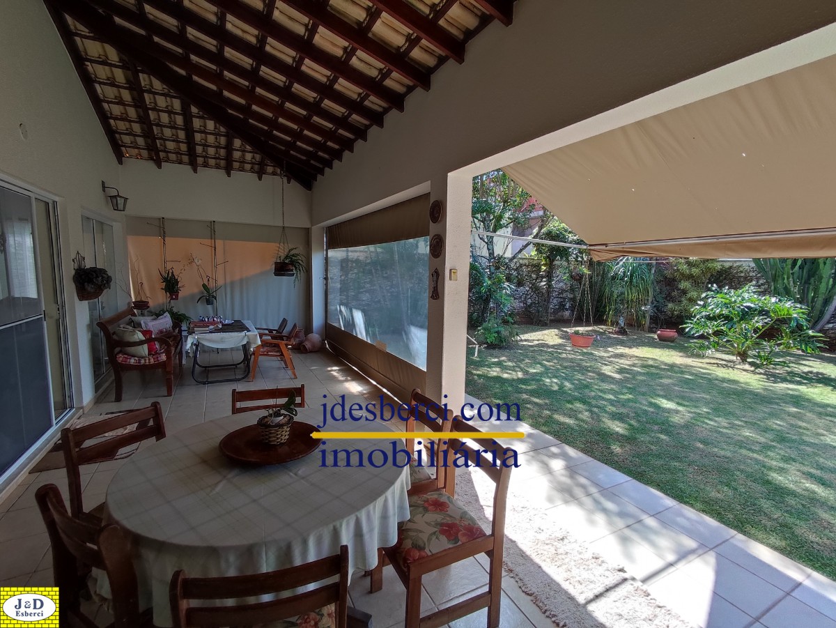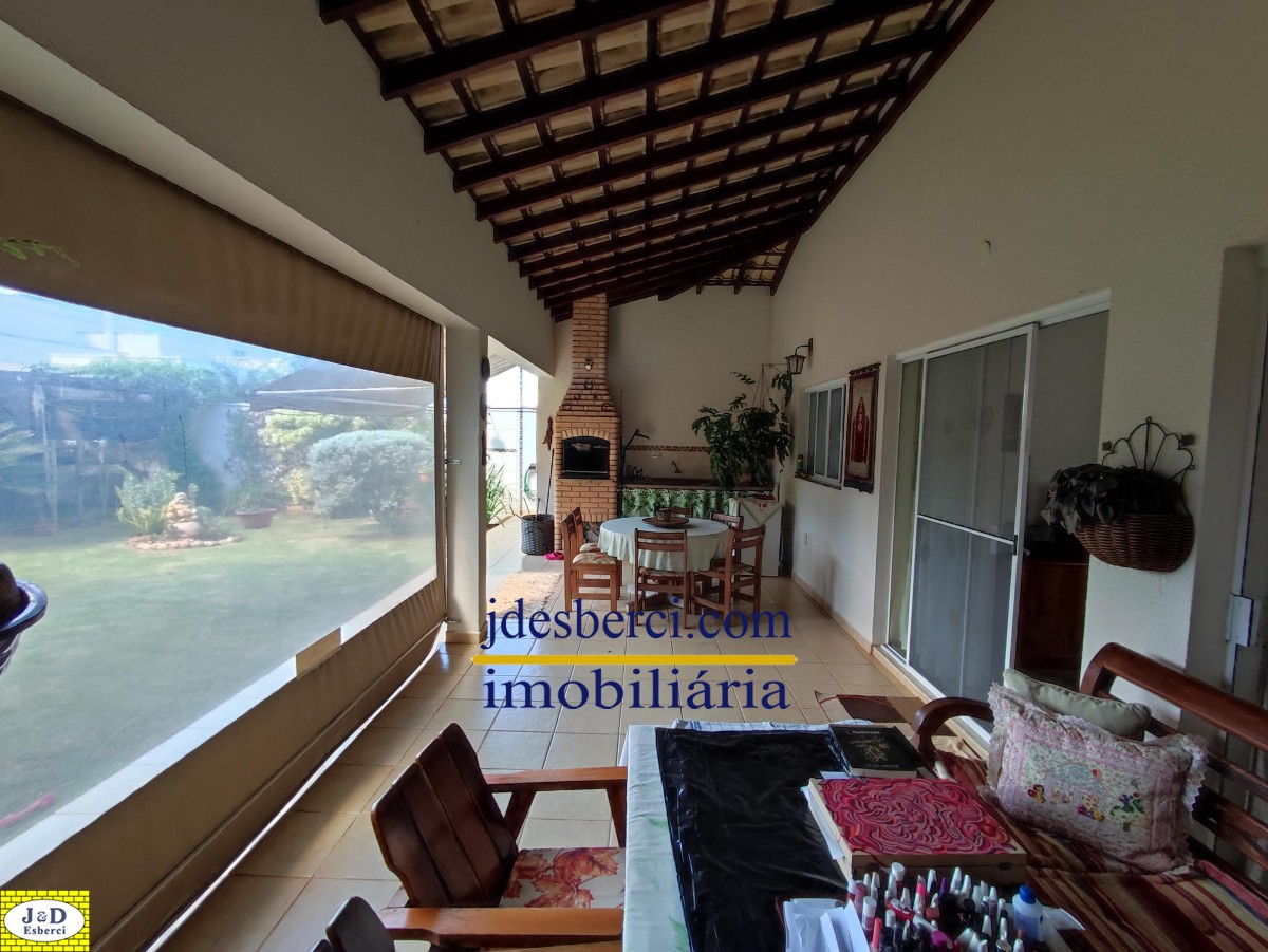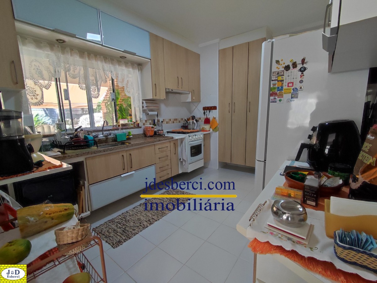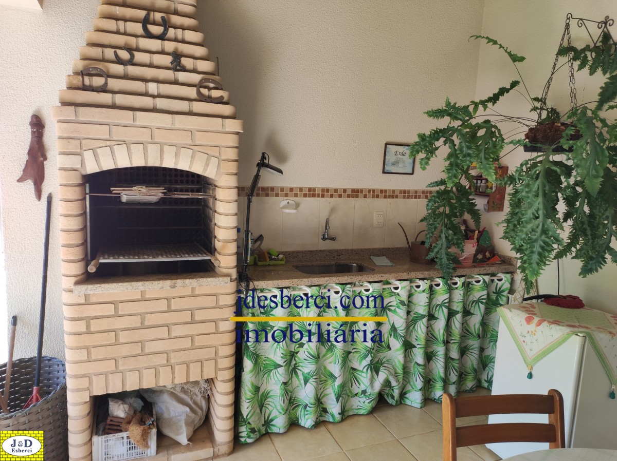 Área de churrasqueira com espaço amplo acoplado a uma varanda, com vista para o quintal, onde possui várias árvores frutíferas e espaços gramado; Área de lavanderia e armários de parede para guardar materiais; Garagem para dois carros.