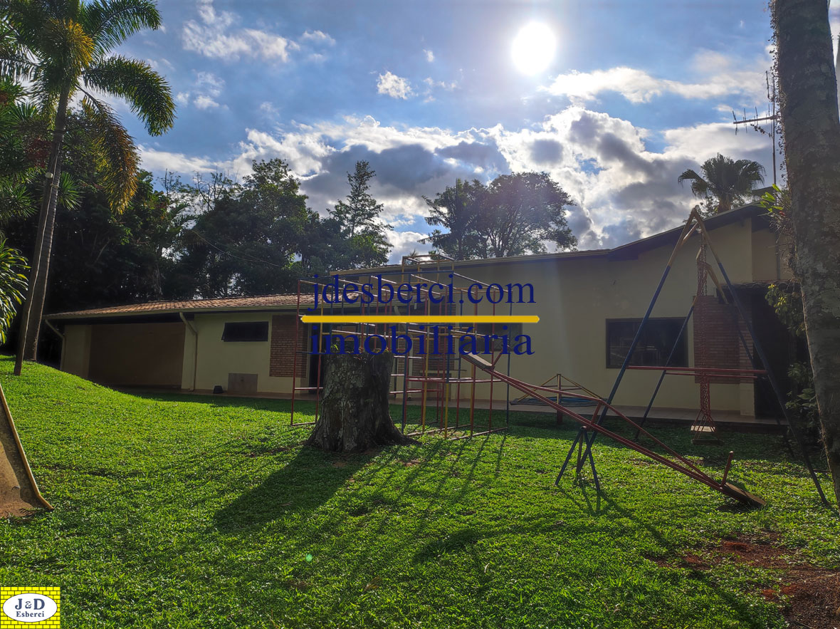 Área com muita natureza, ótima casa sede com 4 dormitórios (sendo 1 suíte) com armários, sala de 2 ambientes, copa e cozinha, banheiro social, lavanderia, varanda, área de lazer completa com piscina de 8 x 4 m com deck que da vista para área verde do sítio e arredores, área de churrasqueira ampla, banheiro exclusivo para área de lazer. Garagem para até 4 carros. Depósito para ferramentas e pequena oficina. Árvores lindas, mangueiras, jabuticabeiras, e outras frutas. Divisa com córrego onde a natureza é exuberante.