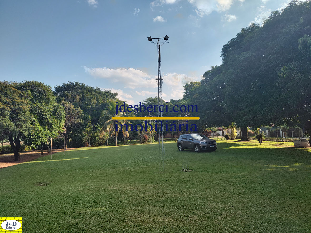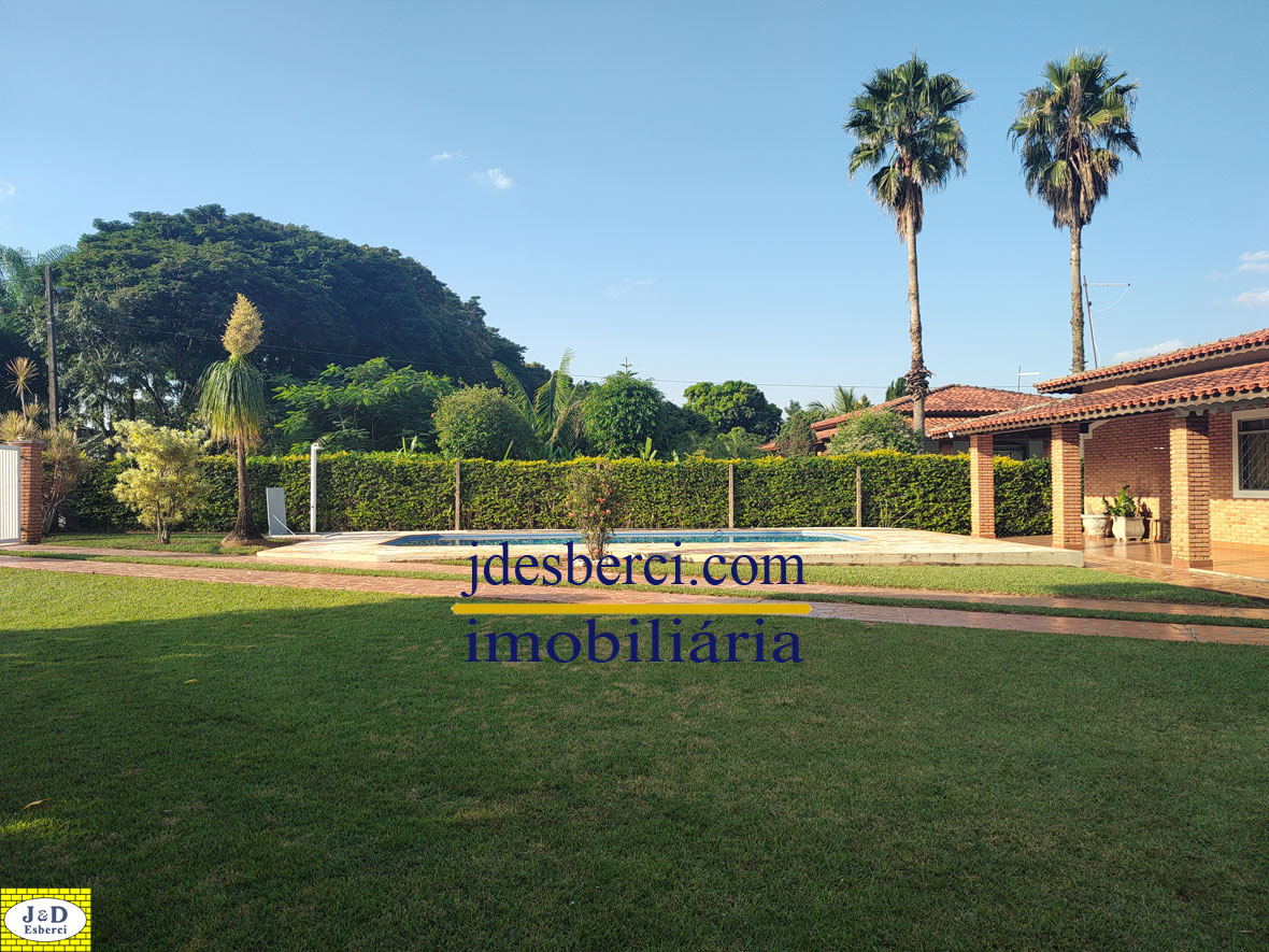 Chácara em condomínio, com uma residência contendo 3 dormitórios, sala, cozinha, banheiro social e despensa; Banheiro externo, área gourmet, piscina, garagem para 2 carros e amplo quintal com árvores frutíferas; Mini campo de futebol.
