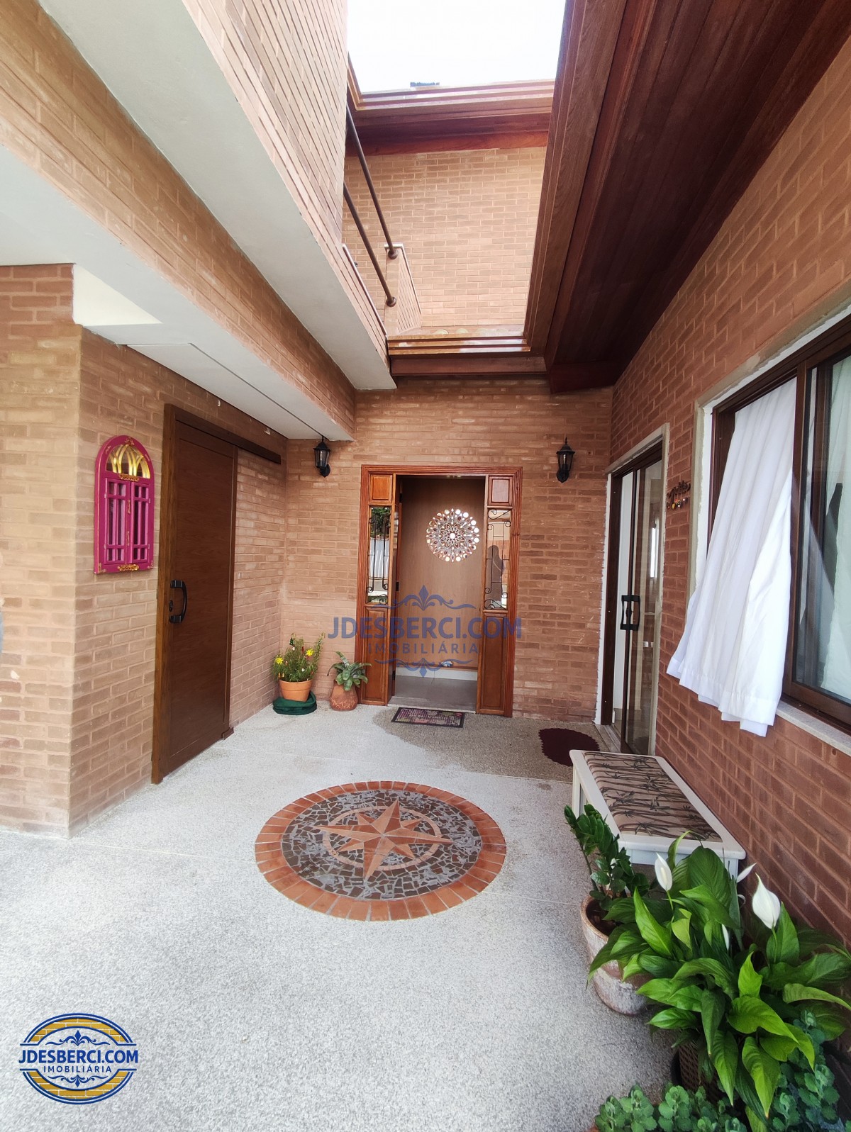 O imóvel se destaca pela arquitetura em tijolos aparentes sem friso, com elegante aplicação de madeiras de alta qualidade, presentes no pé-direito das varandas e no forro, conferindo aconchego, personalidade e um estilo atemporal à construção.