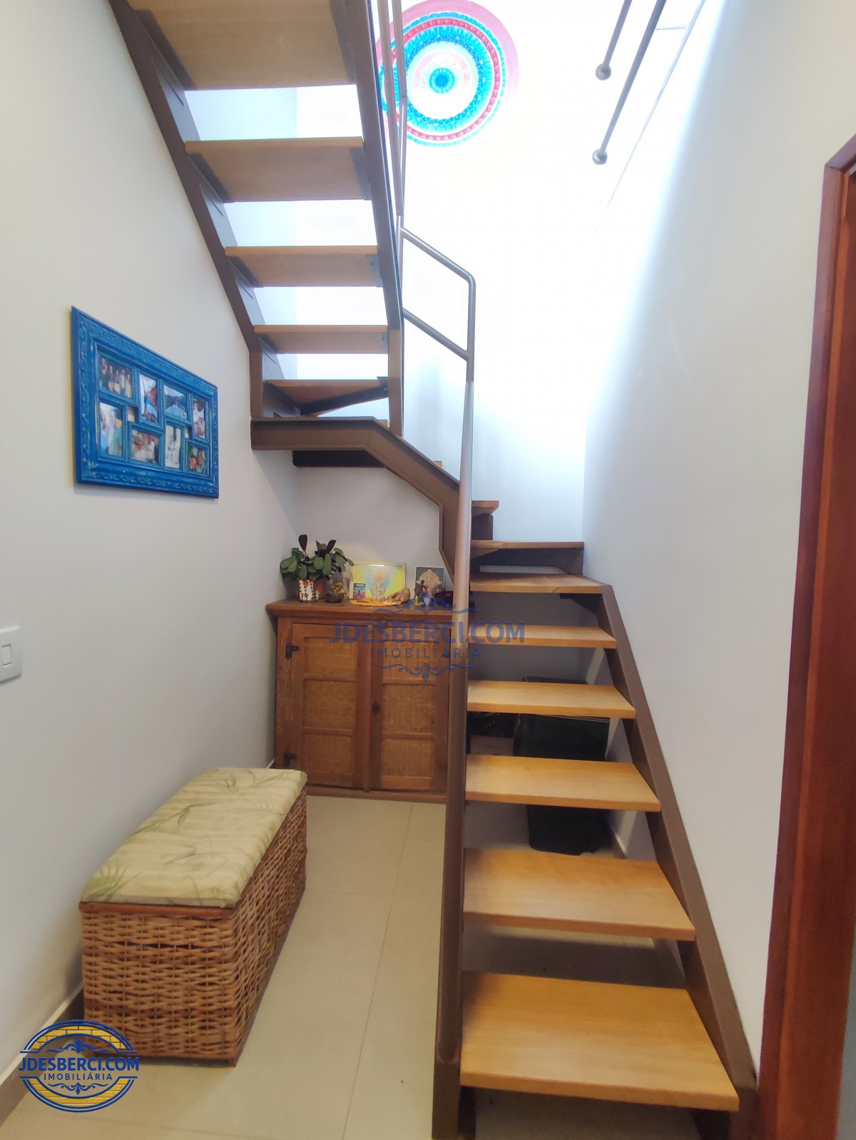 O acesso ao pavimento superior se dá por escada em madeira, onde encontram-se dois dormitórios, sendo: