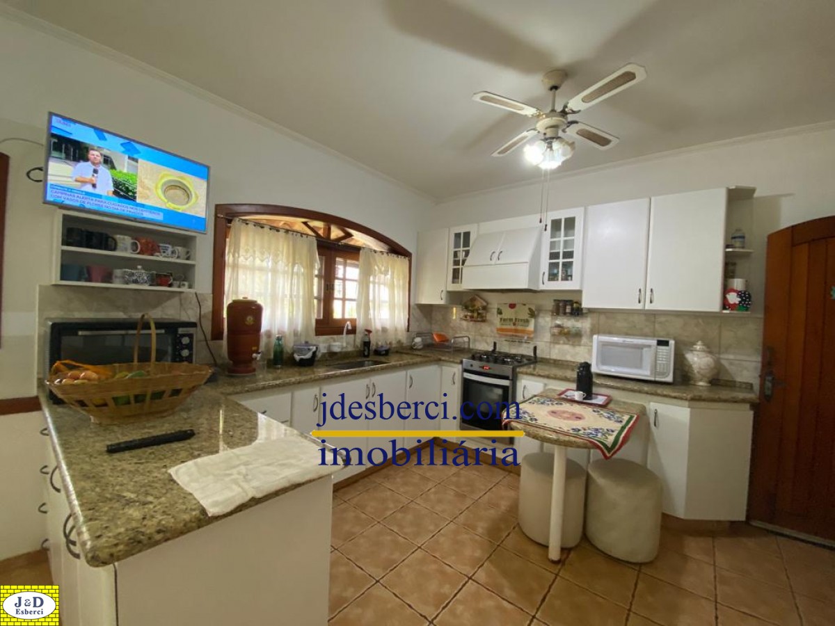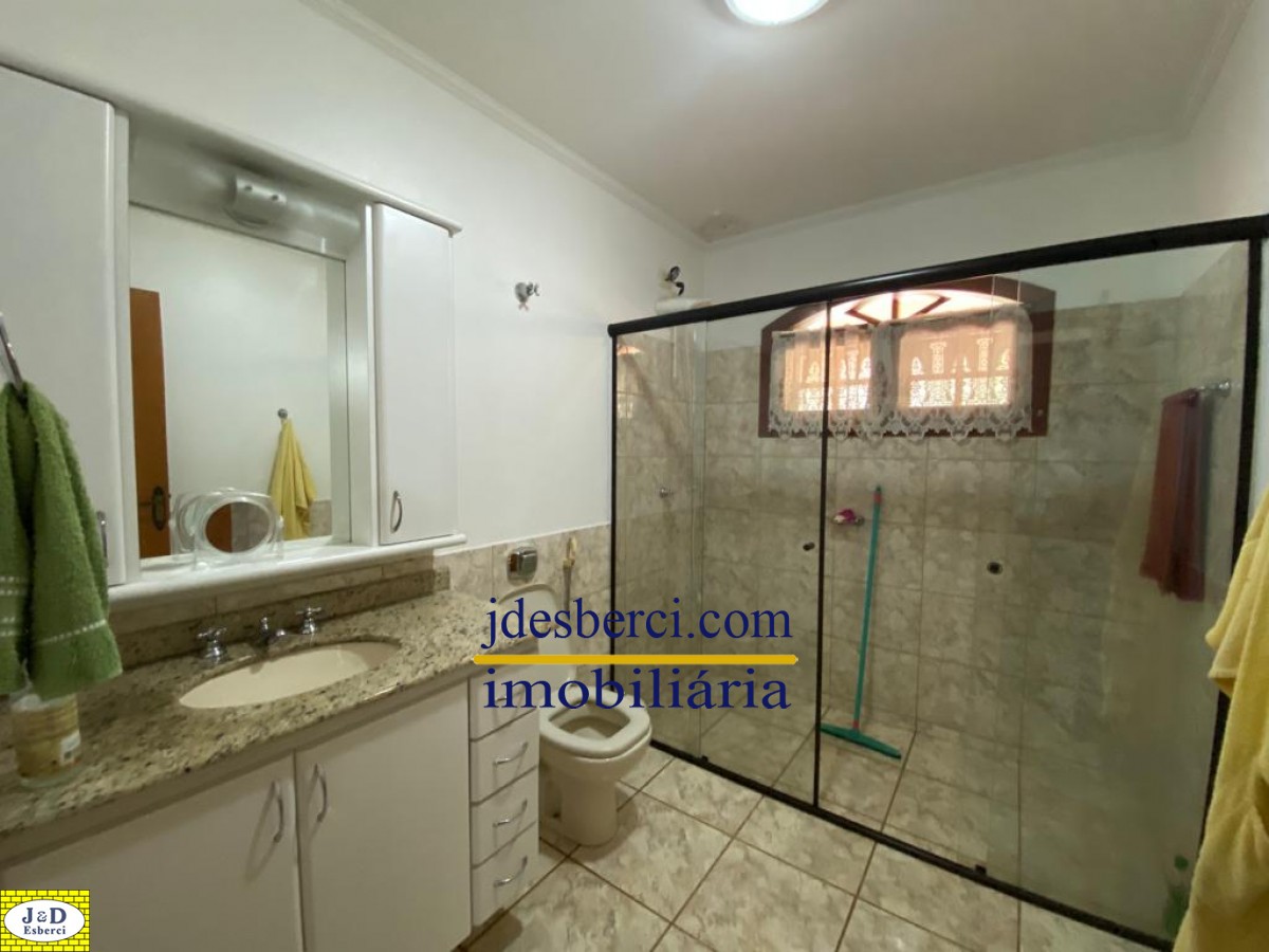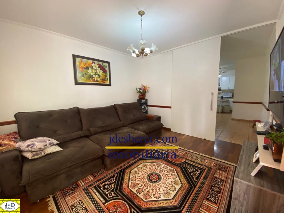 Residência tipo Sobrado em terreno de esquina, 3 dormitórios no andar superior, 2 banheiros, 1 em cada andar, andar térreo com sala de estar, cozinha, sala de jantar integrada, despensa, escritório; Área de lazer com churrasqueira e lavanderia.