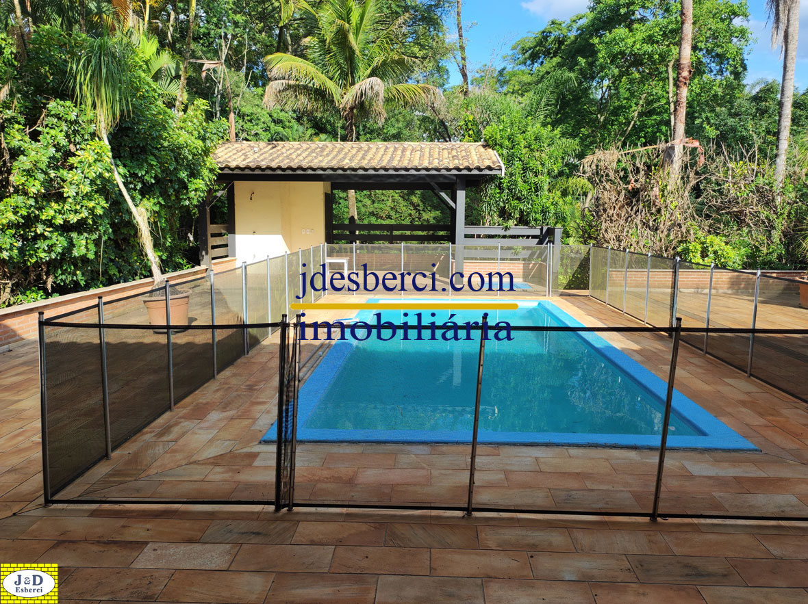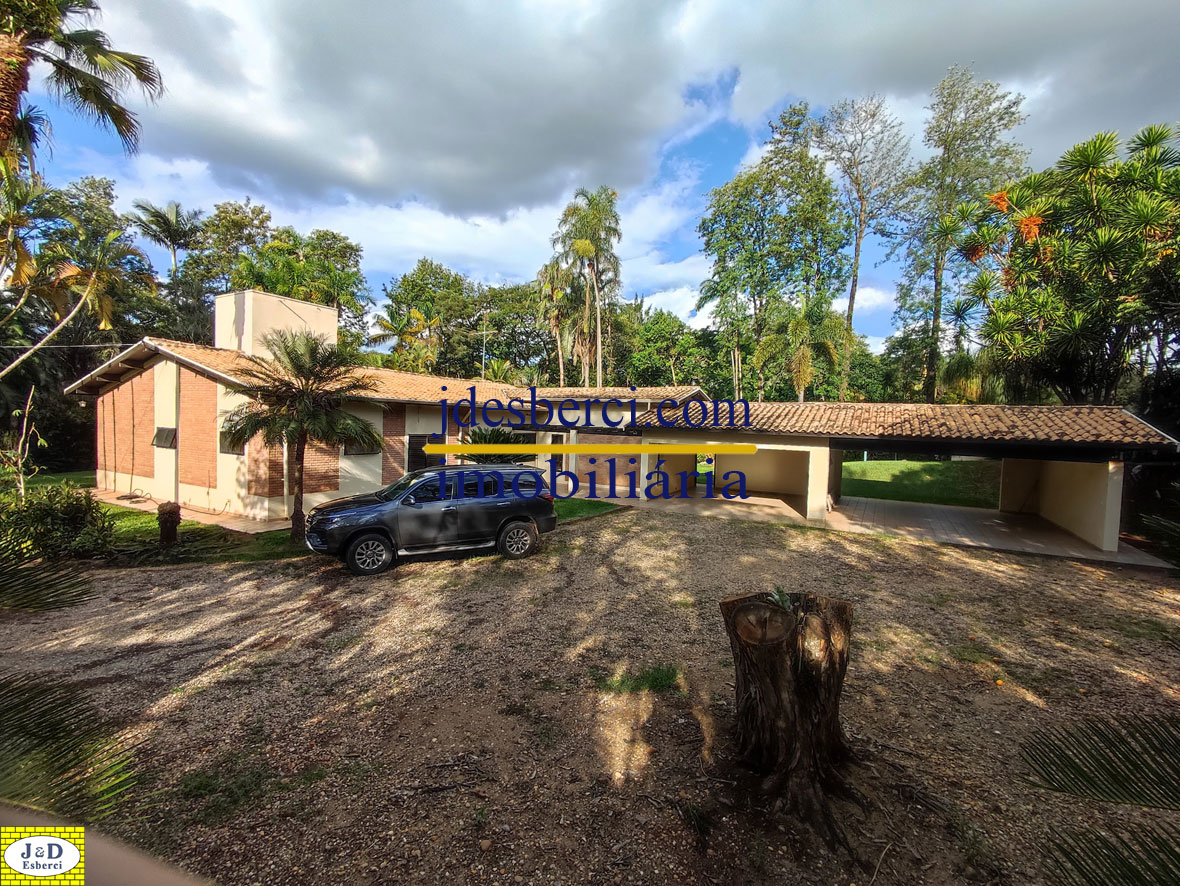 Área com muita natureza, ótima casa sede com 4 dormitórios (sendo 1 suíte) com armários, sala de 2 ambientes, copa e cozinha, banheiro social, lavanderia, varanda, área de lazer completa com piscina de 8 x 4 m com deck que da vista para área verde do sítio e arredores, área de churrasqueira ampla, banheiro exclusivo para área de lazer. Garagem para até 4 carros. Depósito para ferramentas e pequena oficina. Árvores lindas, mangueiras, jabuticabeiras, e outras frutas. Divisa com córrego onde a natureza é exuberante.