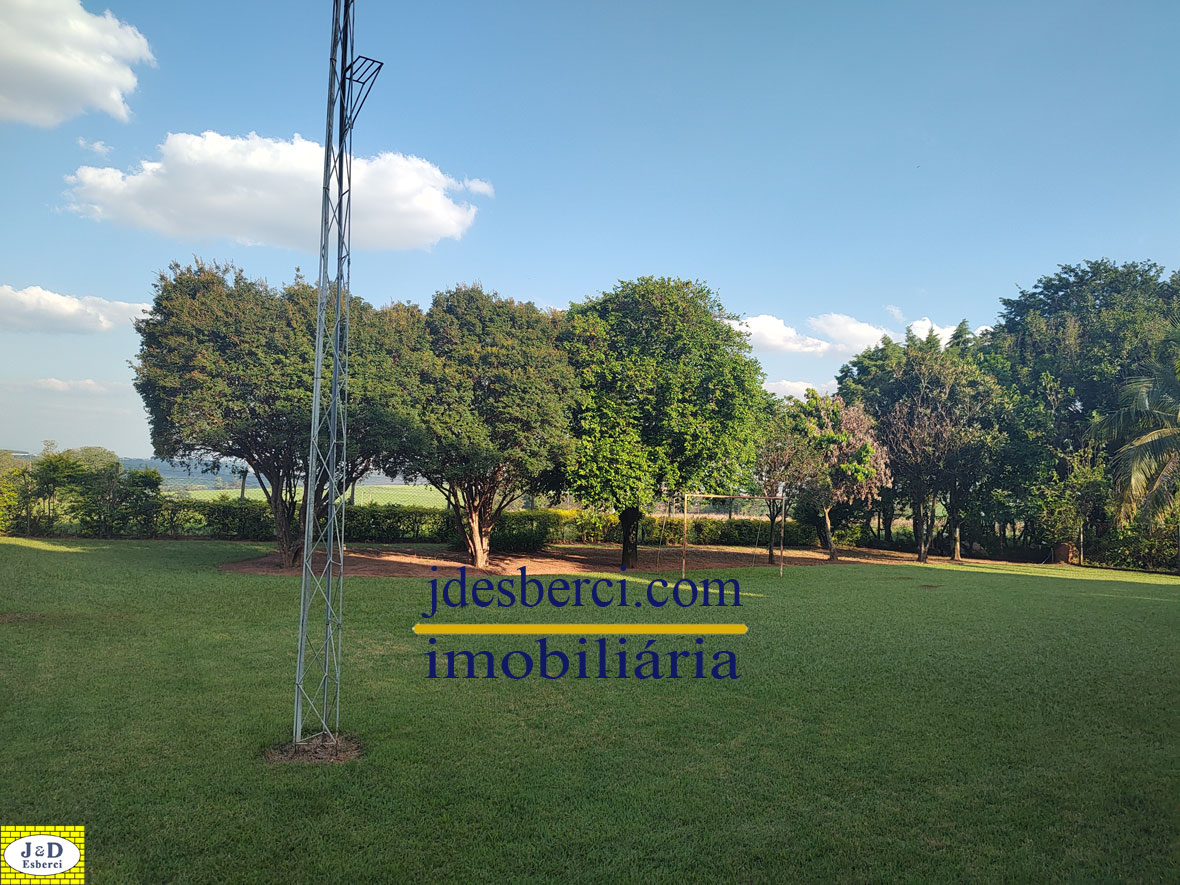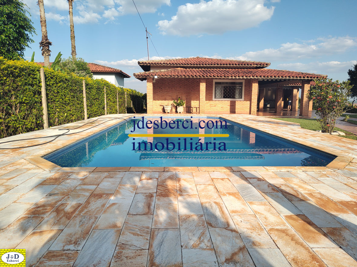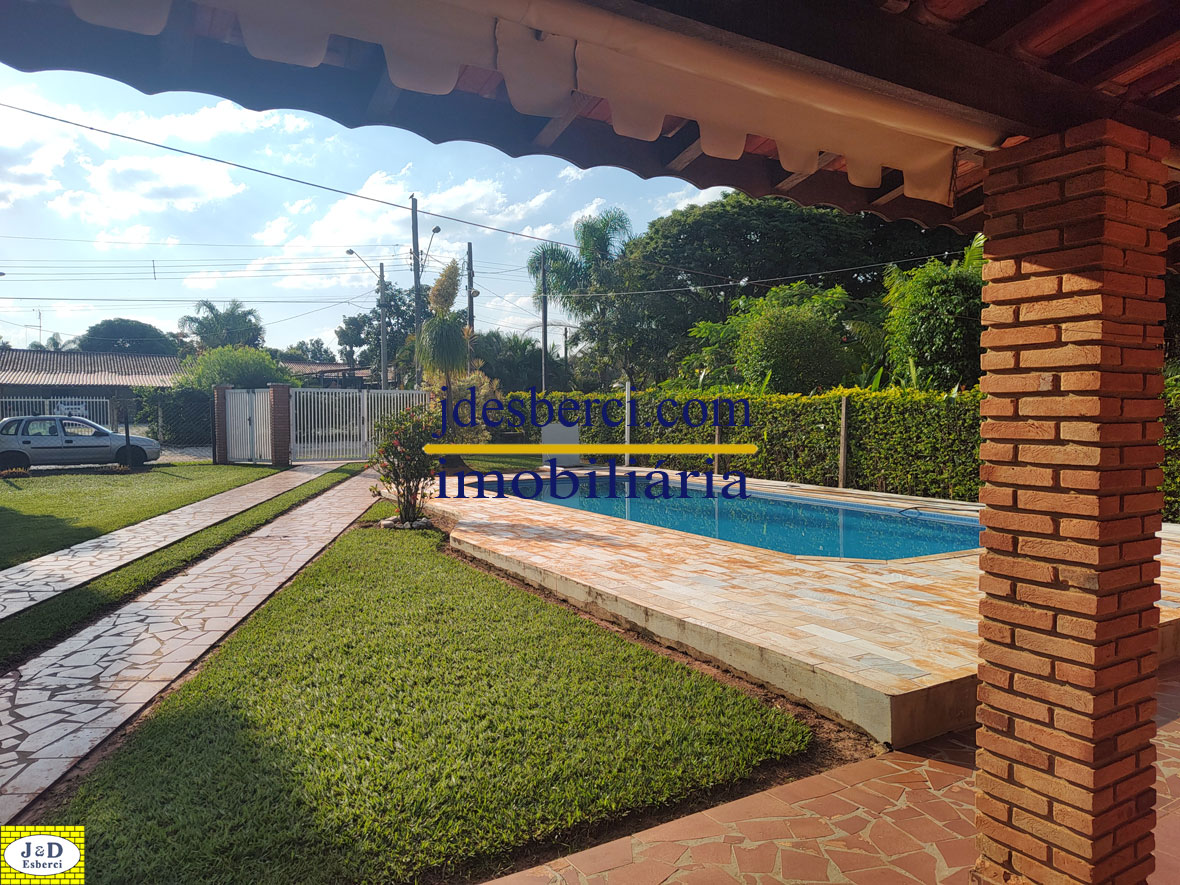 Chácara em condomínio, com uma residência contendo 3 dormitórios, sala, cozinha, banheiro social e despensa; Banheiro externo, área gourmet, piscina, garagem para 2 carros e amplo quintal com árvores frutíferas; Mini campo de futebol.