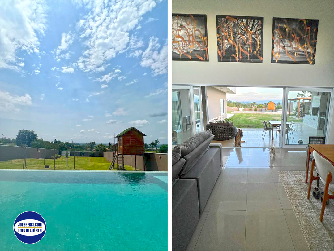 Linda casa térrea. Terreno 1.150m², em CONDOMÍNIO FECHADO; 380m² área construída. 4 quartos (todos com ar condicionado) sendo 2 suítes (closet na suíte máster), Cozinha integrada e planejada com Armários, Área de Lazer linda com mármores. Piscina de 50m² aquecida, com borda infinita, 4 hidros super potentes e luz de LED;